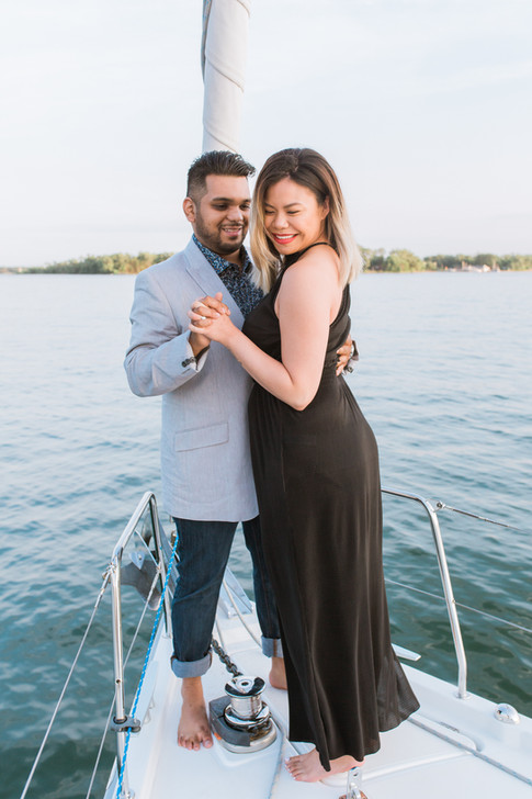 Bryan called me and told me that he had hired a private boat to tour us around Lake Ontario. The scheme we agreed on was that I worked for the boat company as their professional photographer to do a free private couple's session to use for advertising purposes on the boat company's website. So as they got into the boat I said "Hi guys, my name is Gaby Hanna. I'm a professional photographer and work for Gone Sailing Adventures. I will be doing a free photo session for you guys if you give me the consent to use the images on our company's website to advertise for our boat rental packages". They both agreed.